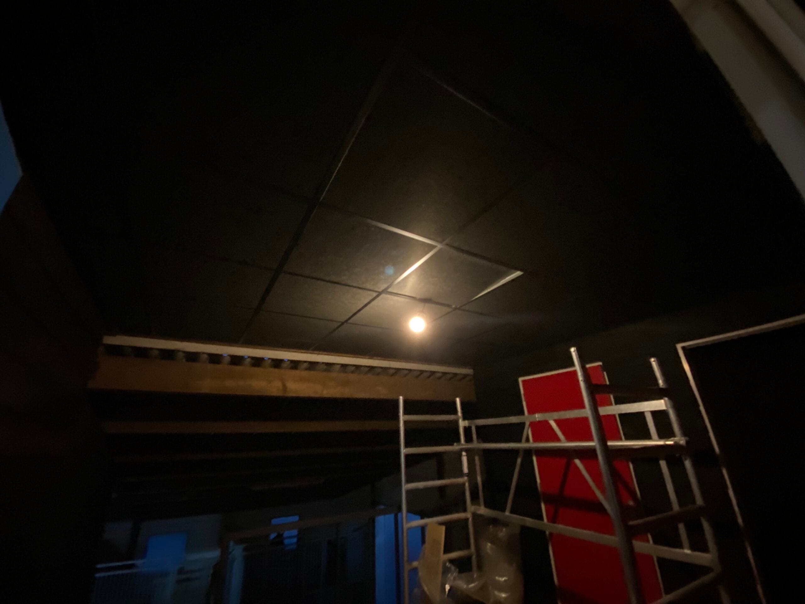De nieuwe kantine van Horsetellerie te Rheezerveen voorzien van de Rockfon Black 60x60cm inleg. Dit geeft de kantine met uitkijk op de rijbak een echte kroeg sfeer. Een fijne bijkomstigheid: rustgevende akoestiek.