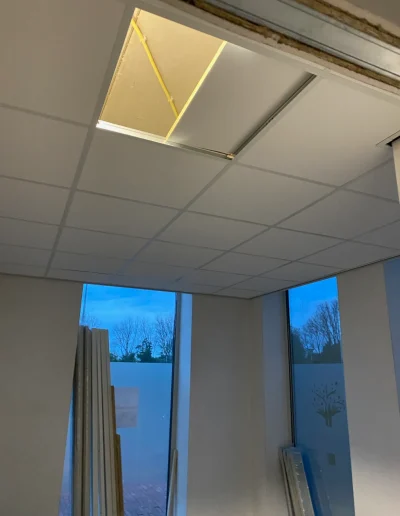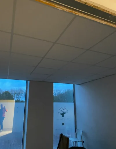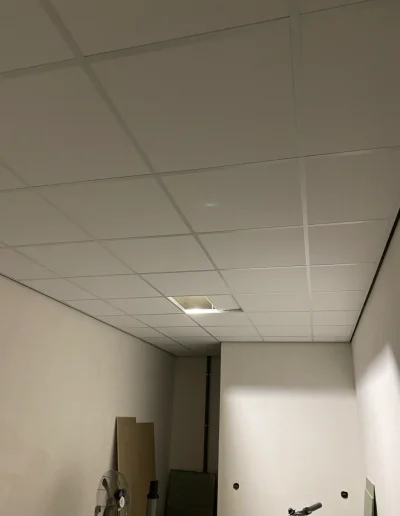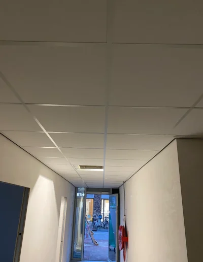 De gebruikte plafondplaat is de Rockfon Pallas. Een uitstekende keuze. Deze plafondplaat reduceert galm maximaal. Door zijn strakke vlies afwerking word het een prachtig geheel.